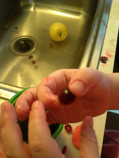 I helped him smoosh some cranberries to.