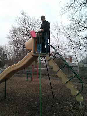 He seemed to be feeling a bit better when we got home and we headed out to the park to finish our egg drop experiments.