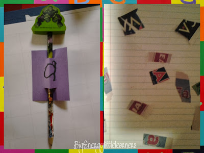 I also helped him make letter a pencil topper.